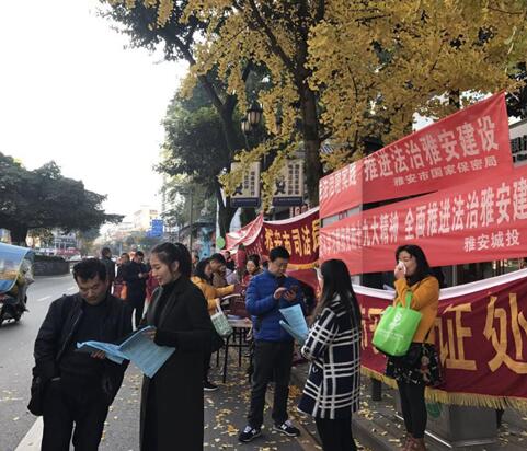 “學習貫徹黨的十九大精神 維護憲法權(quán)威”。我公司懸掛橫幅1條,準備憲法小知識及十九大精神宣傳單1000余張,認真接待來訪群眾并耐心解答群眾提出的法律問題,受到了市民的歡迎。整個上午共接待咨詢?nèi)罕?00余人次,所有宣傳單均發(fā)放給在場市民。本次活動對我公司進行了一次法律知識檢驗,進一步拉近了與群眾的距離,也使過往群眾受到一次深刻的法制教育。