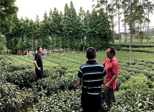 在塘壩村,城投公司幫扶小組同塘壩村村黨總支書記魏國強查看了茶葉交易市場和茶葉種植基地,就茶葉交易市場擴建面積、設計、施工、預算等事宜進行座談,并提出了可行性方案,預計在6月內為塘壩村提供一套擴建茶葉交易市場概念性設計圖。