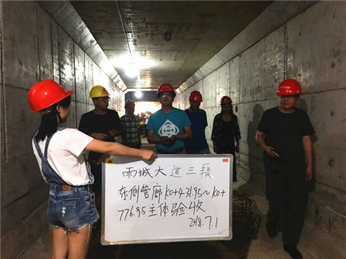 2018年7月12日,雨城大道三段綜合管廊主體結(jié)構(gòu)驗收合格,標(biāo)志著雅安市城市建設(shè)正式進(jìn)入綜合管廊時代,對雅安市以后綜合管廊建設(shè)開發(fā)起到積極的引領(lǐng)作用,是雅安市綜合管廊建設(shè)的第一里程碑。