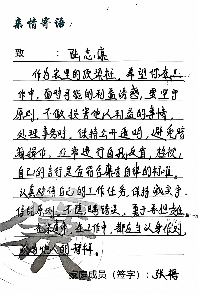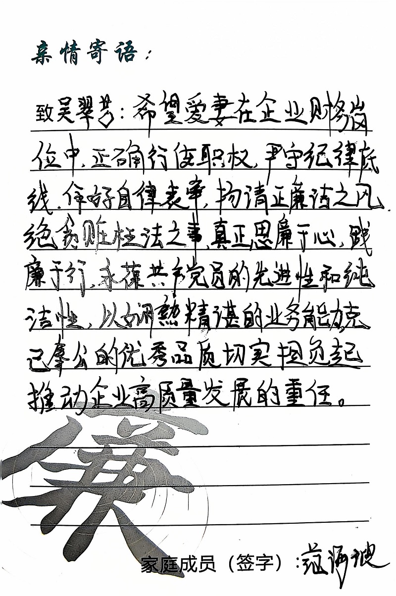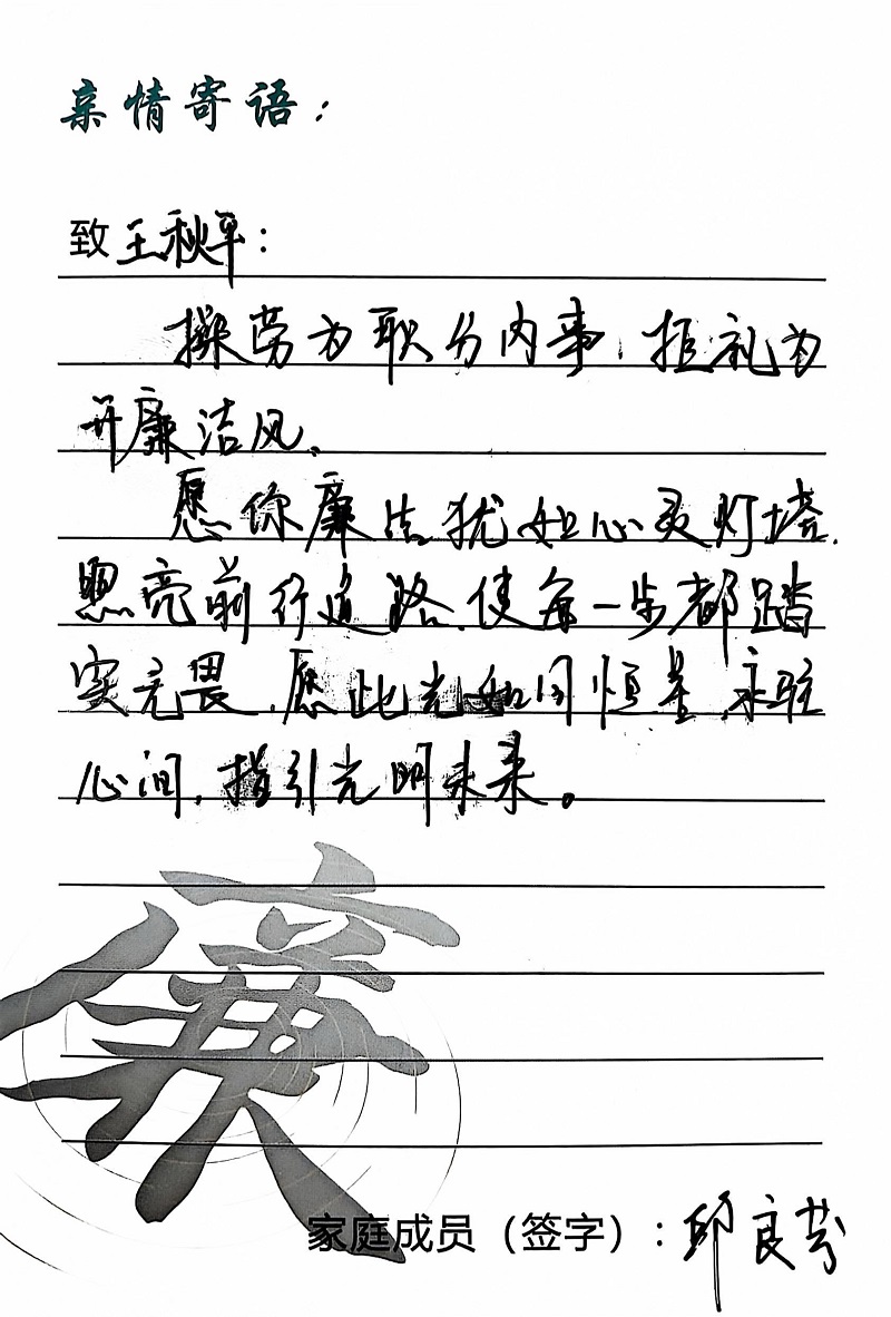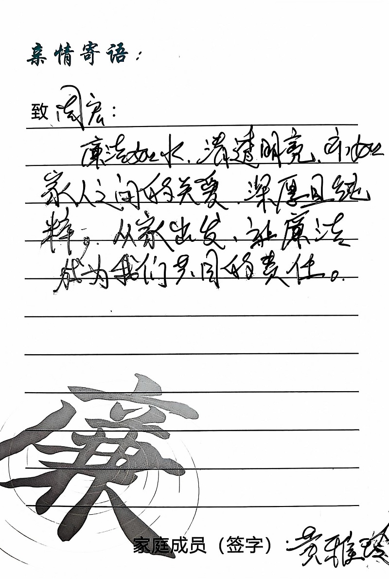 為深入學習黨的二十大精神,貫徹落實習近平總書記關(guān)于注重家庭家教家風建設(shè)的重要論述,營造公司崇廉、尚廉、踐廉、助廉的良好氛圍,城投公司組織開展了“家滿清風·廉潤城投”廉潔文化活動;顒娱_展以來,共征集廉政寄語210余條。經(jīng)各部門、子公司推薦,城投公司相關(guān)部門審核,評選出優(yōu)秀廉潔寄語43條,F(xiàn)將優(yōu)秀廉政寄語分批次進行展播,快來一起欣賞吧!