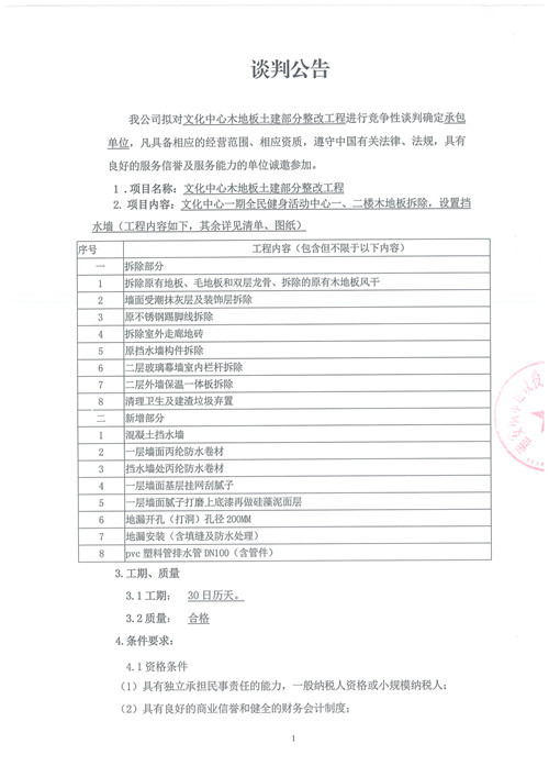 文化中心木地板土建部分整改工程——競爭性談判