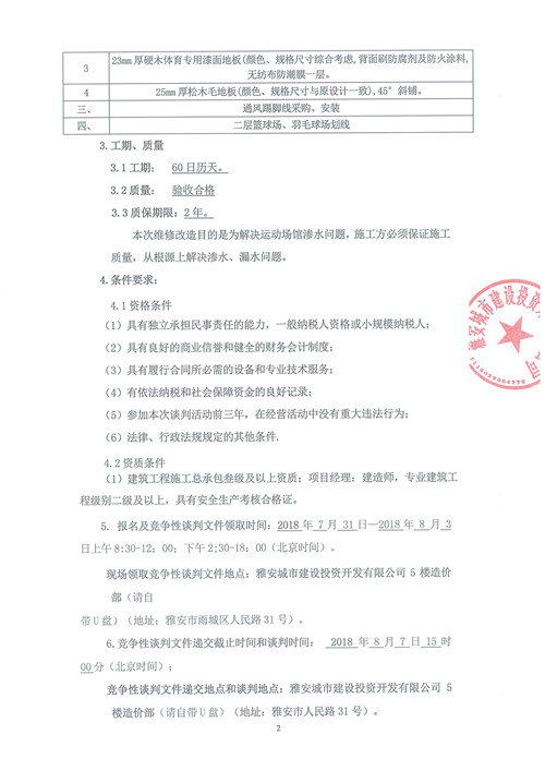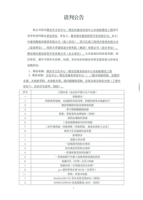 雅安市文化中心一期全民健身活動(dòng)中心木地板整改工程——競(jìng)爭性談判公告