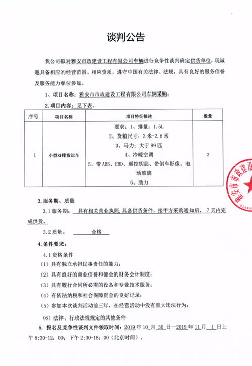 市政公司車輛采購競爭性談判公告