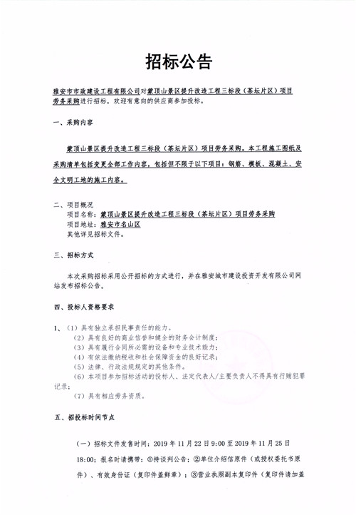 蒙頂山景區(qū)提升改造工程三標(biāo)段(茶壇片區(qū))勞務(wù)采購(gòu)項(xiàng)目招標(biāo)公告