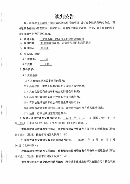 城投·文曲新座物業(yè)信息化軟件采購(gòu)項(xiàng)目競(jìng)爭(zhēng)性談判公告