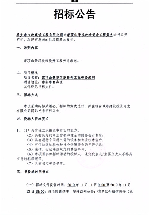 市政公司蒙頂山景觀改造提升工程勞務(wù)招標(biāo)公告