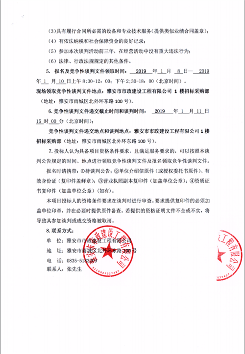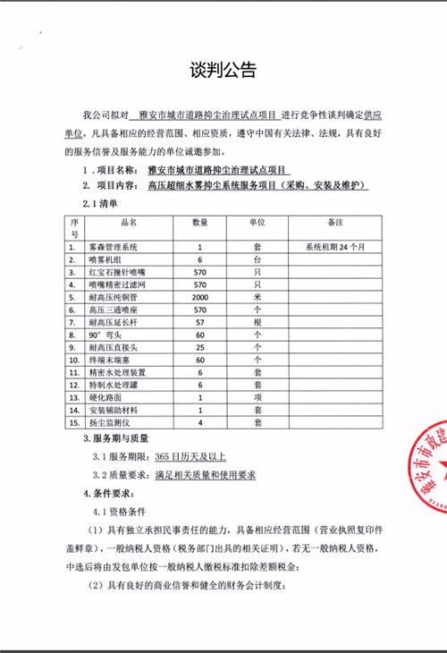 雅安市城市道路抑塵治理試點(diǎn)項(xiàng)目進(jìn)行競(jìng)爭(zhēng)性談判公告(市政公司)