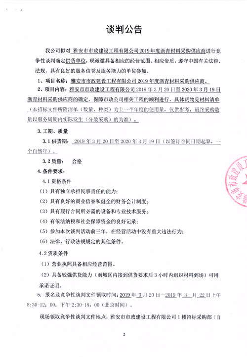 市政公司2019年度瀝青采購供應(yīng)商競爭性談判公告