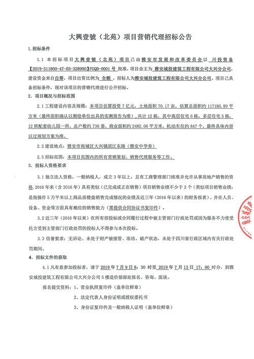 大興壹號(hào)(北苑)項(xiàng)目營銷代理招標(biāo)公告