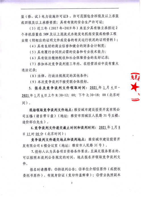 羅家灣電站2#水輪發(fā)電機組A級檢修工程談判公告