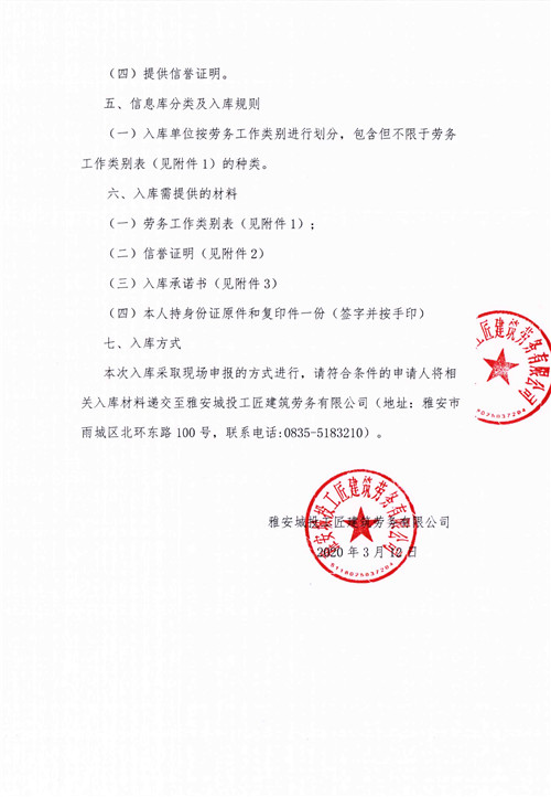 關(guān)于征集勞務(wù)施工人員入庫(kù)的公告