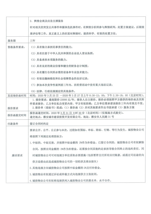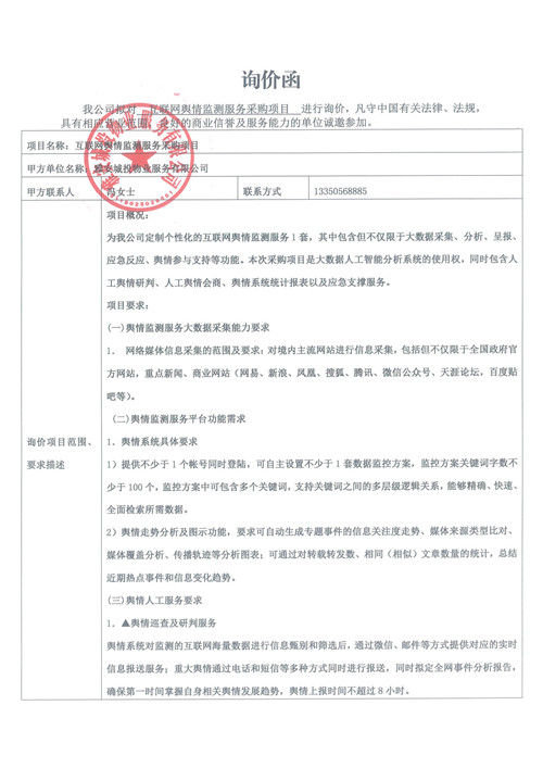 城投物業(yè)公司互聯(lián)網(wǎng)輿情監(jiān)測服務(wù)采購項(xiàng)目詢價函