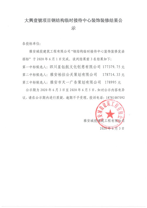城投建工公司大興壹號項目鋼結(jié)構(gòu)臨時接待中心裝飾裝修詢價函結(jié)果公示