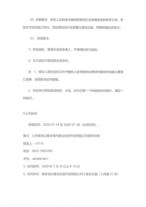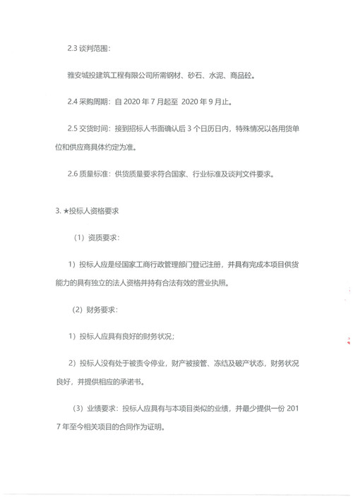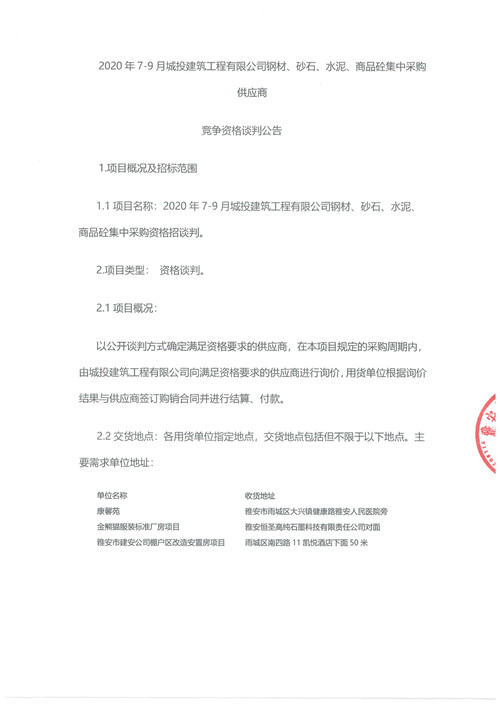 2020年7月-9月城投建筑工程有限公司鋼材、砂石、水泥、商品砼集中采購供應商競爭性資格談判公告