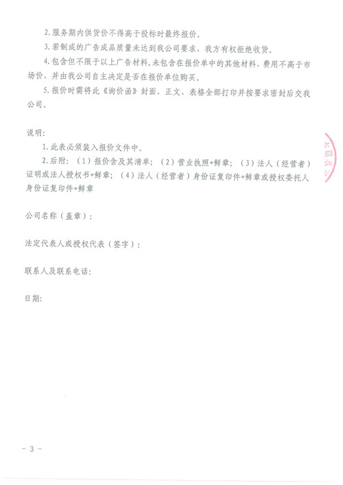 雅安城市建設(shè)投資開發(fā)有限公司公司內(nèi)部廣告制作服務(wù)詢價函