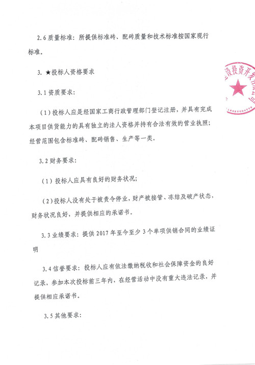 2020年9月-2021年9月雅安城市建設(shè)投資開發(fā)有限公司標(biāo)準(zhǔn)磚、配磚等集中采購競爭磋商公告