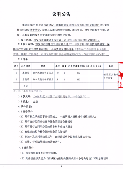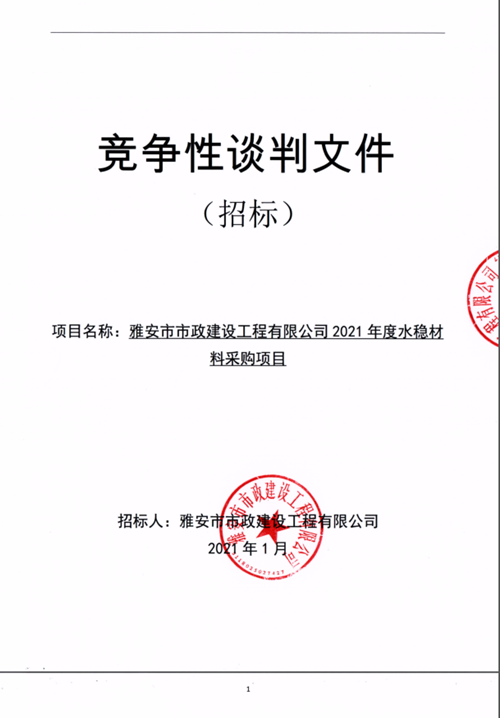 雅安市市政建設工程有限公司2021年度水穩(wěn)材料采購項目