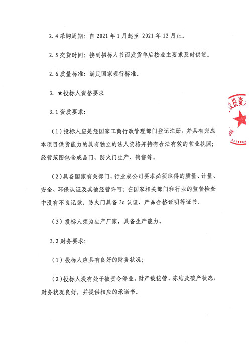 2021年1月-2021年12月雅安城市建設(shè)投資開發(fā)有限公司成品門、防火門集中采購(gòu)(第二次)競(jìng)爭(zhēng)磋商公告