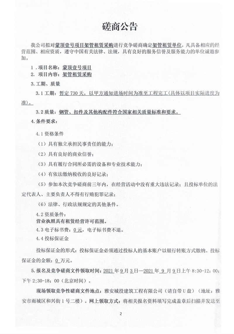 蒙頂壹號(hào)項(xiàng)目架管租賃采購競(jìng)爭(zhēng)磋商公告
