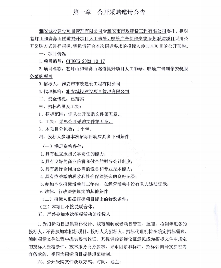 蒼坪山和青鼻山隧道提升項(xiàng)目人工彩繪、噴繪廣告制作安裝服務(wù)采購項(xiàng)目公開采購邀請(qǐng)公告