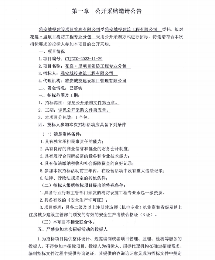 花襄·里項(xiàng)目消防工程專業(yè)分包公開采購邀請公告