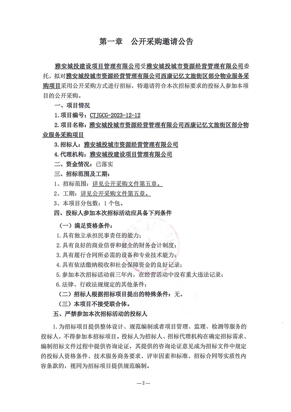 西康記憶文旅街區(qū)部分物業(yè)服務(wù)采購項且公開采購邀請公告