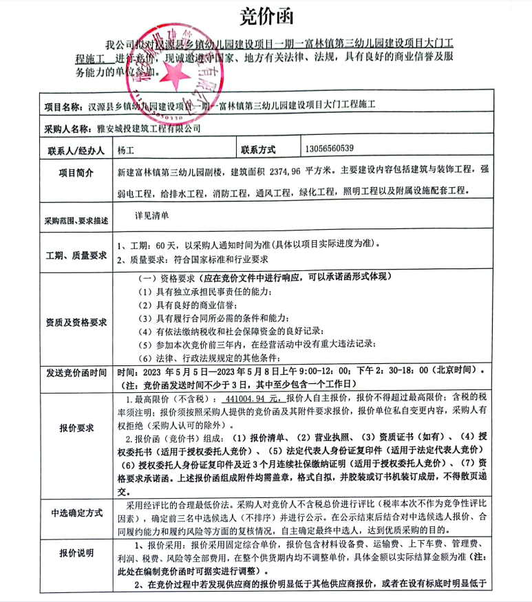 漢源縣鄉(xiāng)鎮(zhèn)幼兒園建設(shè)項(xiàng)目一期一富林鎮(zhèn)第三幼兒園建設(shè)項(xiàng)目大門工程施工競(jìng)價(jià)公告