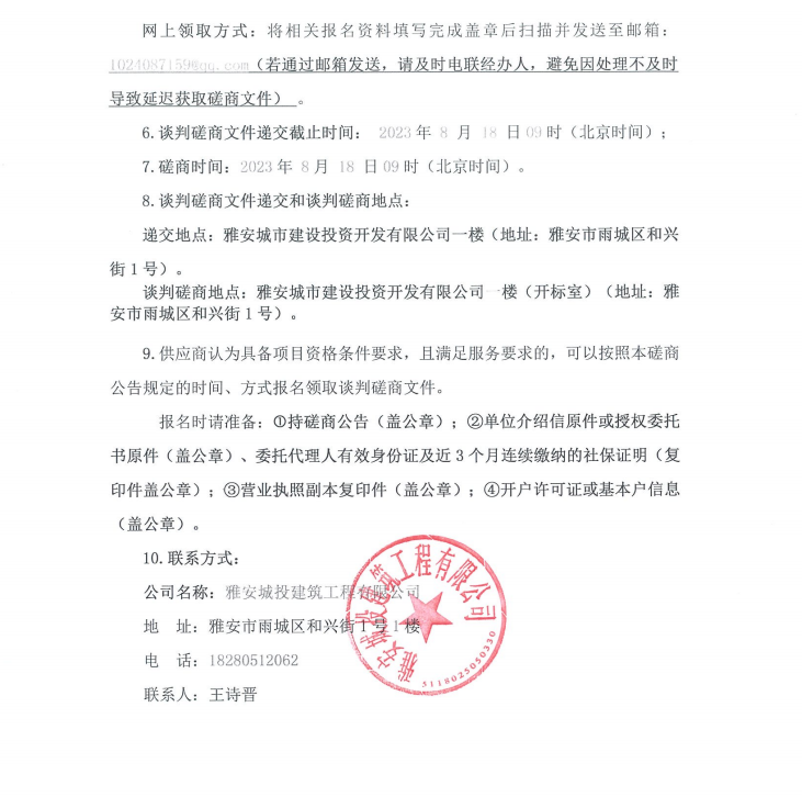 雅安市西康記憶生態(tài)文旅街區(qū)項(xiàng)目一號(hào)地塊項(xiàng)目弱電智能化系統(tǒng)談判磋商公告