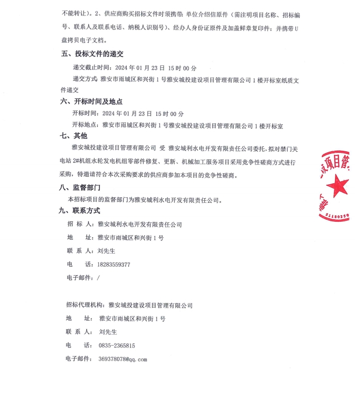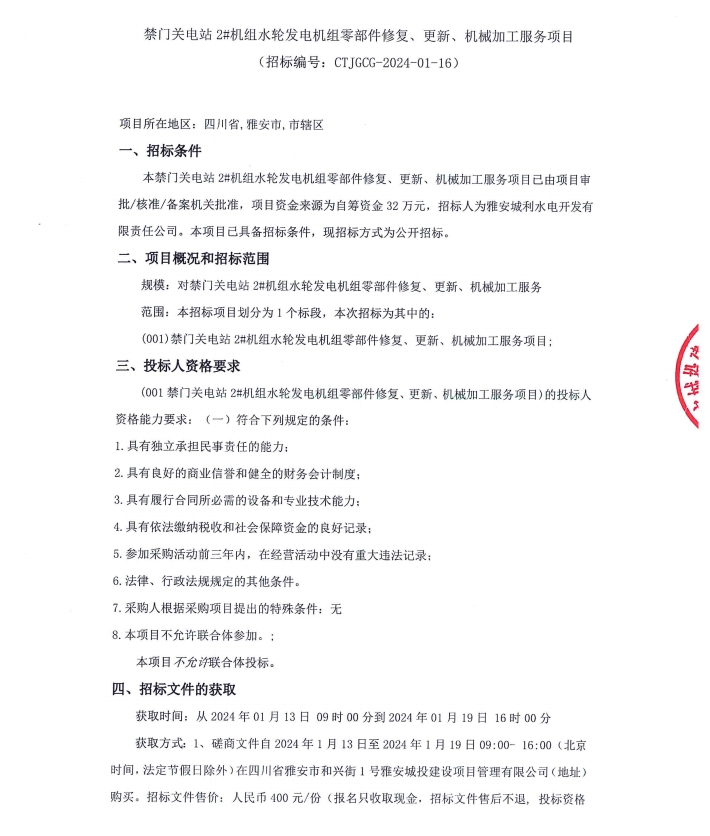 禁門(mén)關(guān)電站2#機(jī)組水輪發(fā)電機(jī)組零部件修復(fù)、更新、機(jī)械加工服務(wù)項(xiàng)目公告