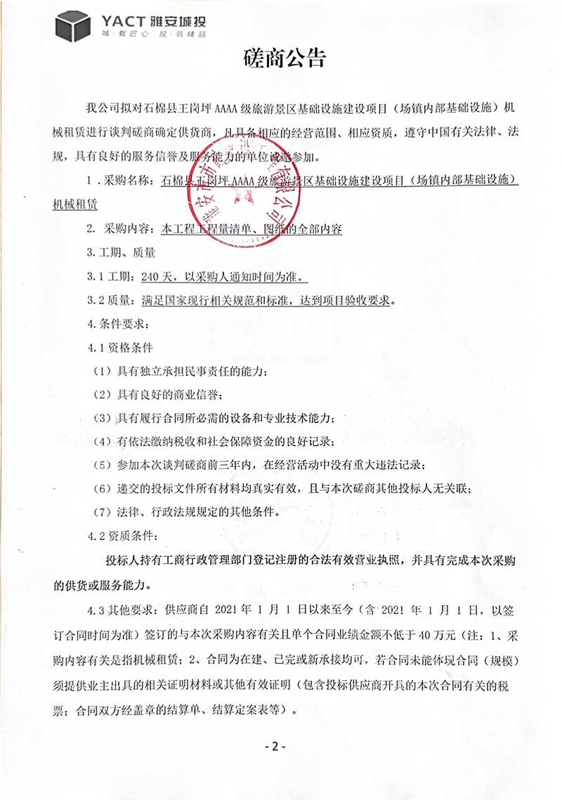 石棉縣王崗坪AAAA級旅游景區(qū)基礎(chǔ)設(shè)施建設(shè)項目(場鎮(zhèn)內(nèi)部基礎(chǔ)設(shè)施)機(jī)械租賃
