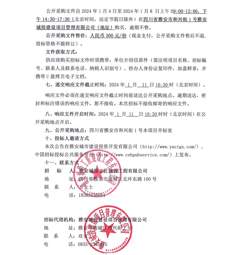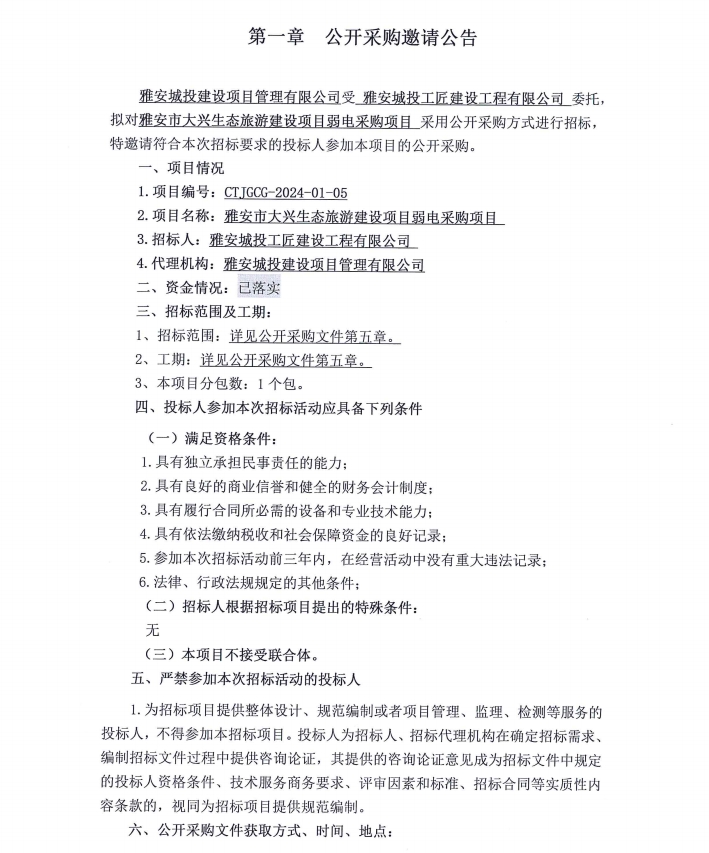 雅安市大興生態(tài)旅游建設(shè)項(xiàng)目弱電采購項(xiàng)目公開采購邀請公告