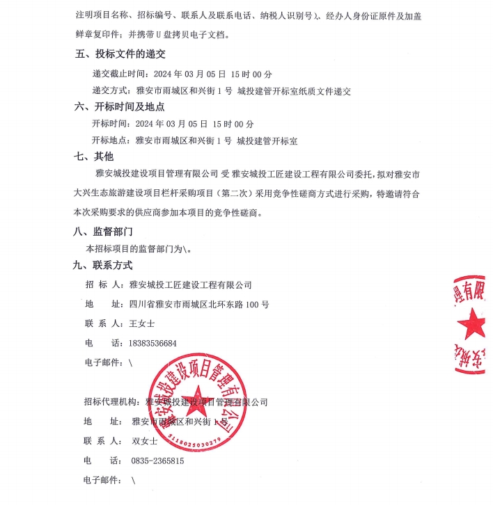 雅安市大興生態(tài)旅游建設(shè)項(xiàng)目欄桿采購項(xiàng)目(第二次)公告