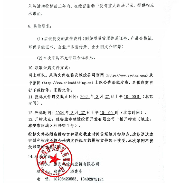 2024年3月-2025年2月雅安城投供應(yīng)鏈有限公司水泥穩(wěn)定碎石采購(二次)公告