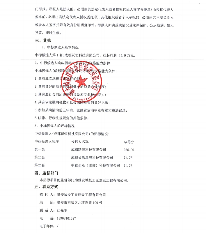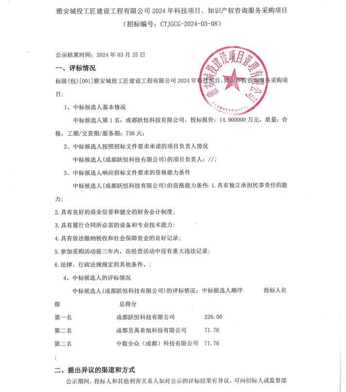 雅安城投工匠建設(shè)工程有限公司2024年科技項(xiàng)目、知識(shí)產(chǎn)權(quán)咨詢服務(wù)采購項(xiàng)目公示