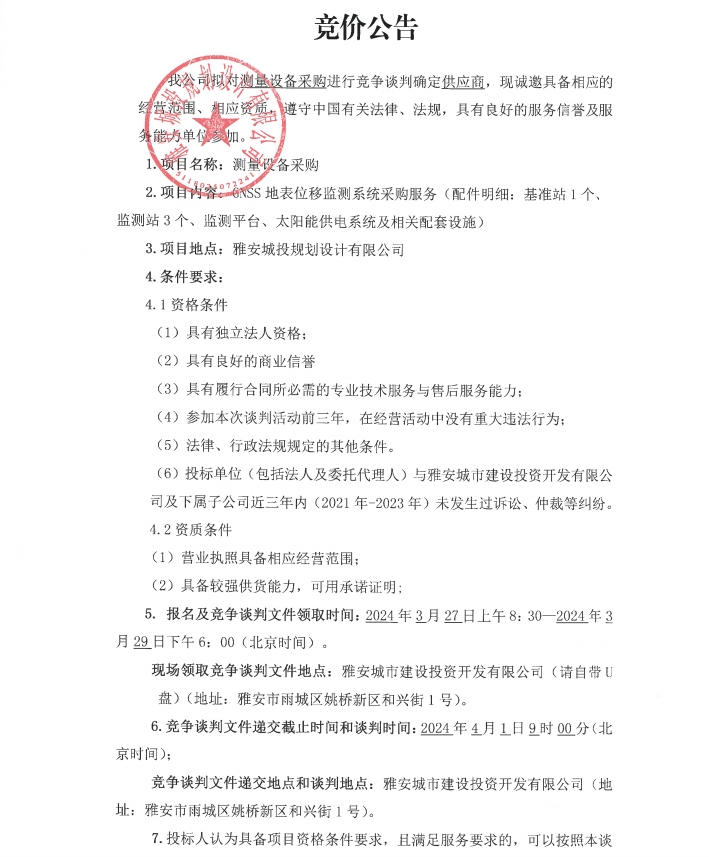測(cè)量設(shè)備GNSS地表位移監(jiān)測(cè)系統(tǒng)采購(gòu)競(jìng)價(jià)公告