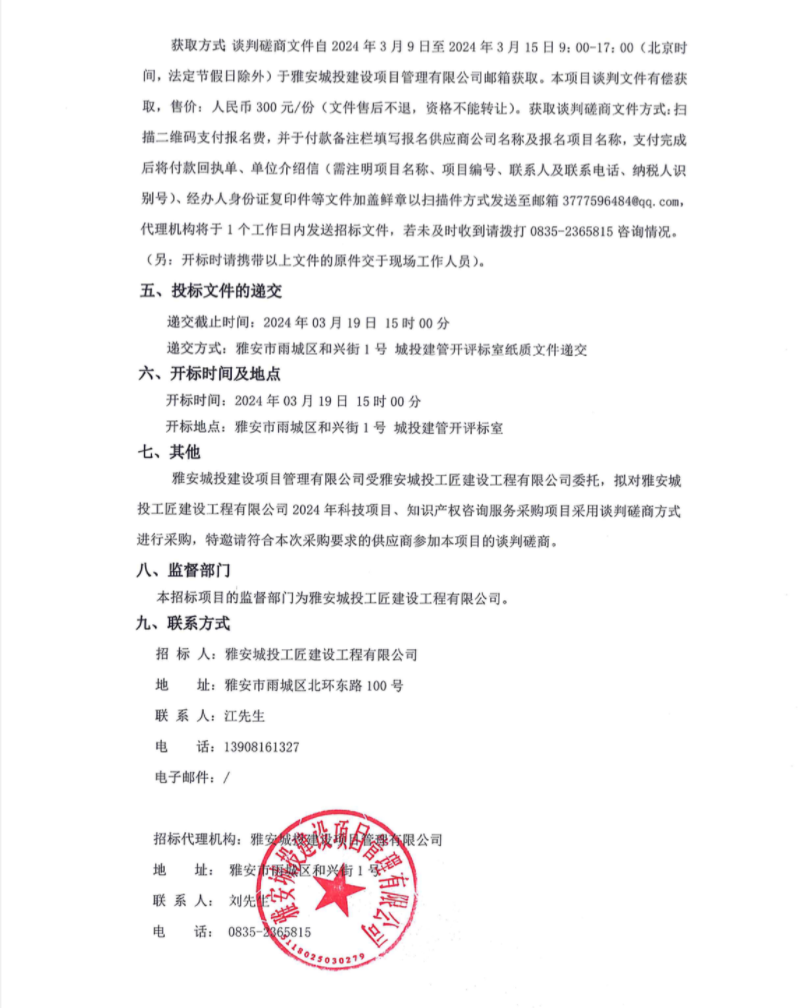 雅安城投工匠建設工程有限公司2024年科技項目、知識產(chǎn)權咨詢服務采購項目