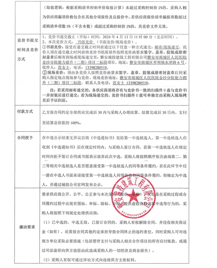 雅安市雨城區(qū)人民醫(yī)院金沙分院能力提升(二期)項目二標(biāo)段零星材料采購競價公告