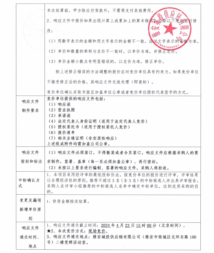 雅安城投供應(yīng)鏈有限公司花崗石采購競價公告