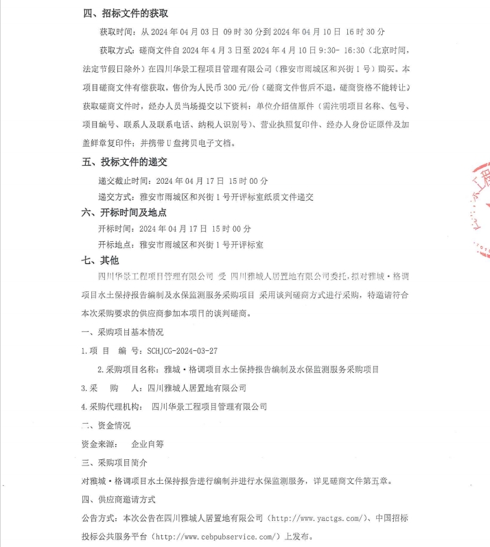 雅城·格調(diào)項(xiàng)目水土保持報(bào)告編制及水保監(jiān)測服務(wù)采購項(xiàng)目競爭性磋商公告