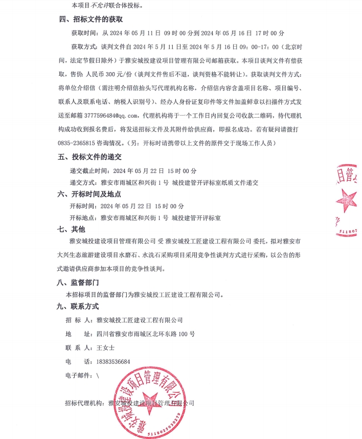 雅安市大興生態(tài)旅游建設項目水磨石、水洗石采購項目公告