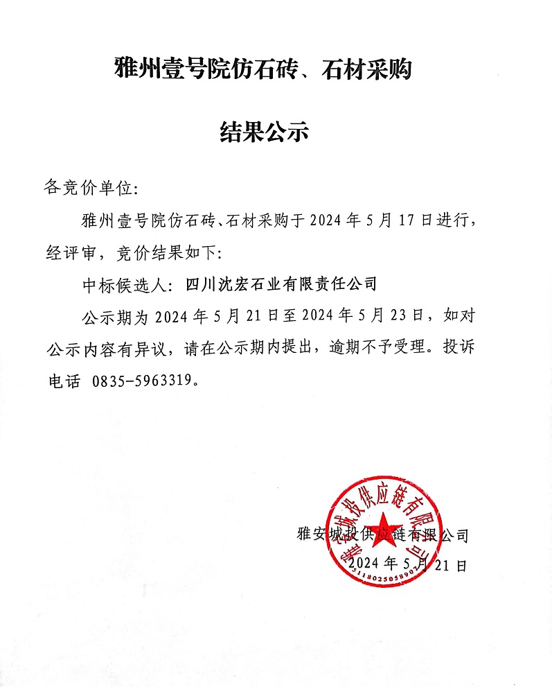 雅州壹號(hào)院仿石磚、石材采購結(jié)果公示