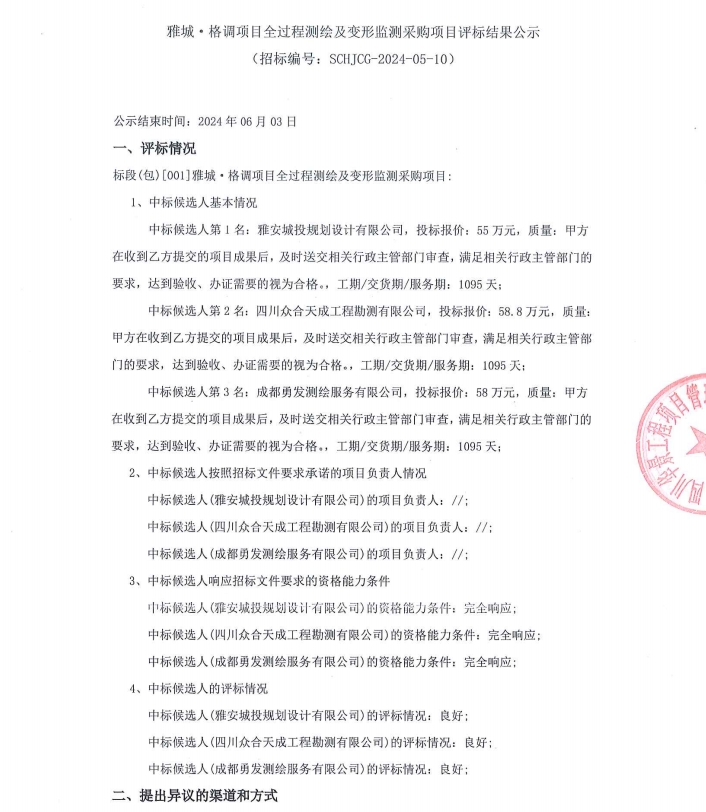 雅城·格調(diào)項(xiàng)目全過程測(cè)繪及變形監(jiān)測(cè)采購(gòu)項(xiàng)目評(píng)標(biāo)結(jié)果公示