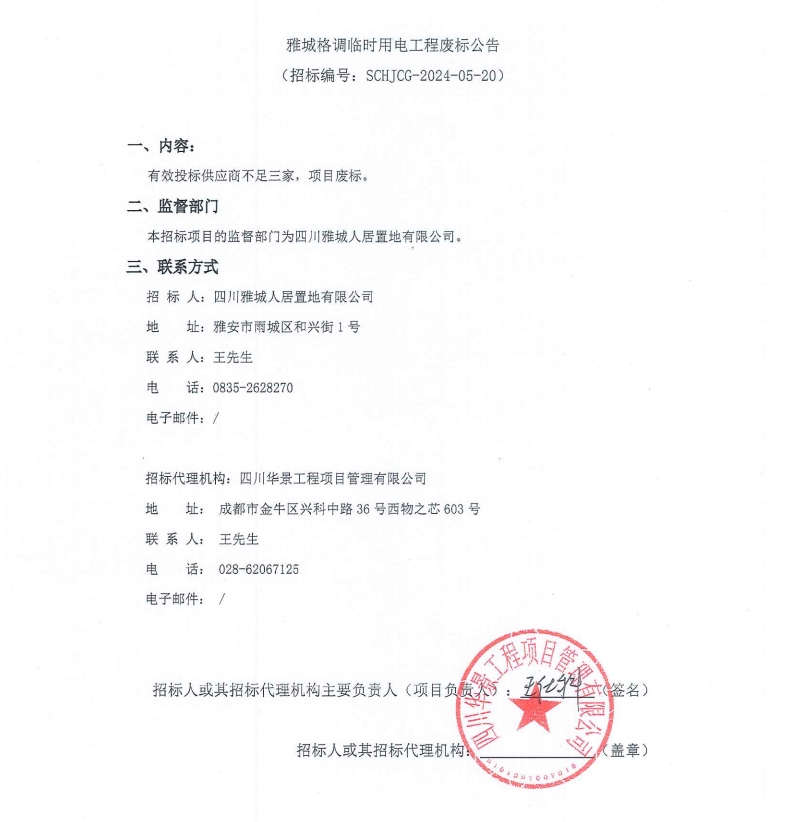 雅城格調(diào)臨時用電工程廢標(biāo)公告