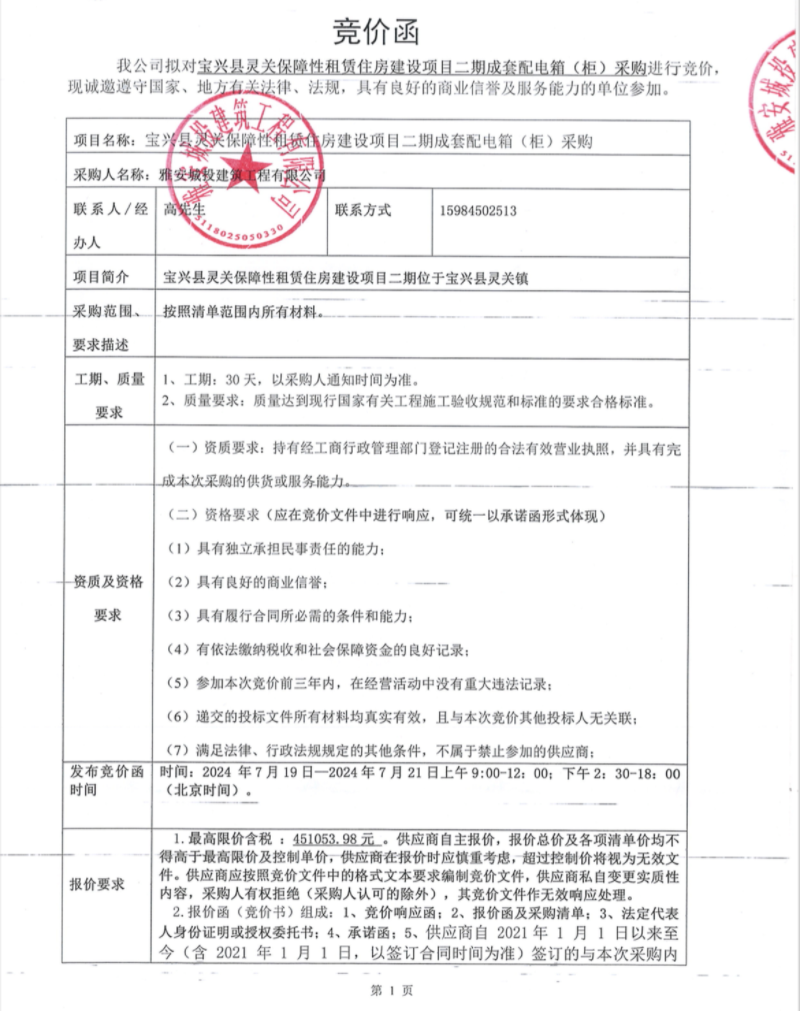 寶興縣靈關(guān)保障性租賃住房建設(shè)項(xiàng)目二期成套配電箱(柜)采購(gòu)競(jìng)價(jià)公告