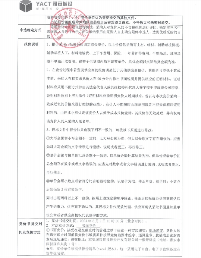 石棉縣王崗坪鄉(xiāng)電商農(nóng)副產(chǎn)品集散中心等十個工程打捆項目綠化材料競價函
