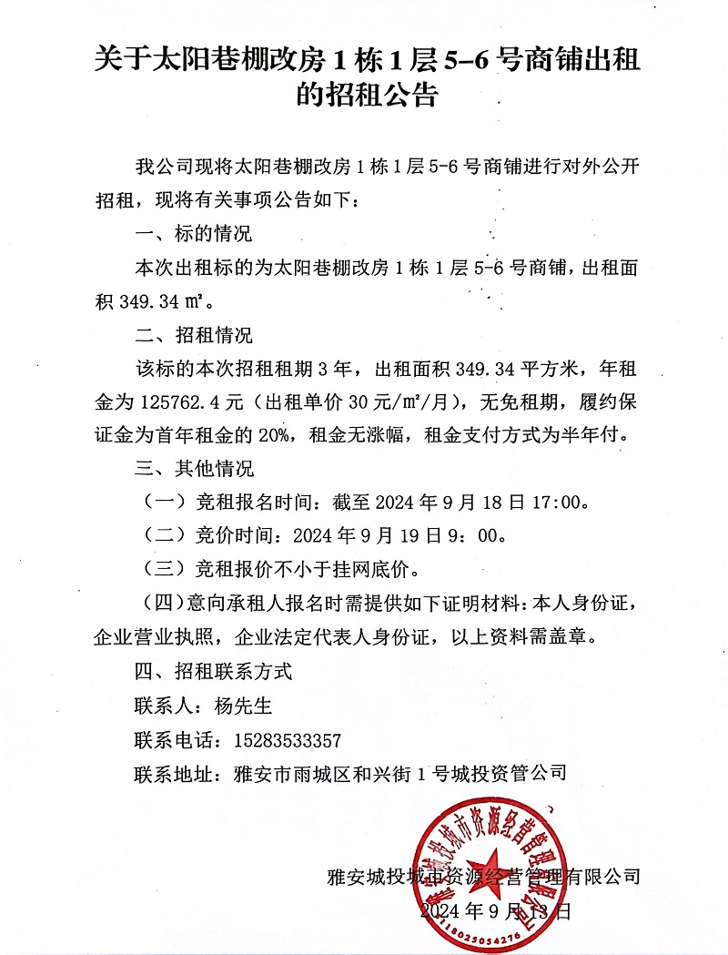 關(guān)于太陽(yáng)巷棚改房1棟1層5-6號(hào)商鋪出租的招租公告