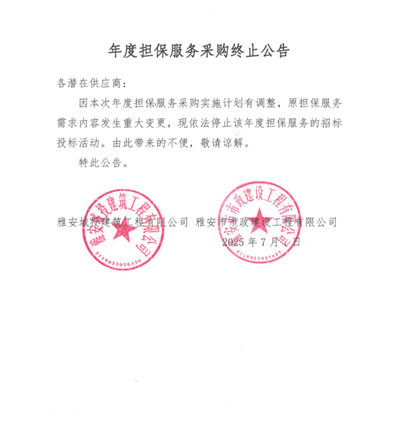 年度擔保服務采購終止公告