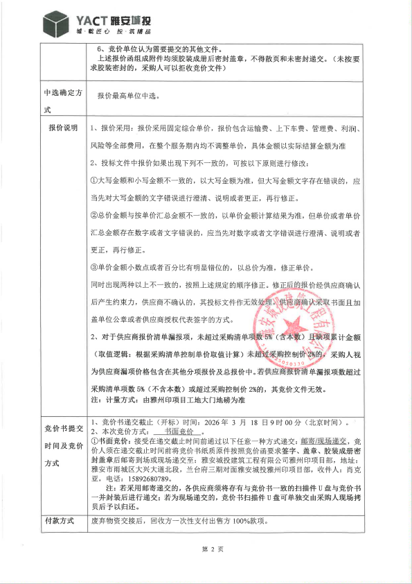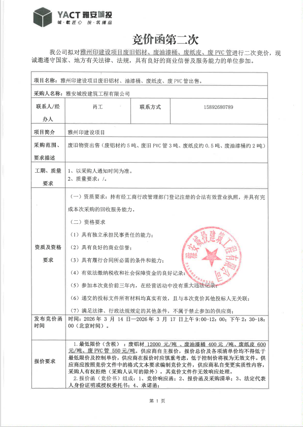 雅州印建設(shè)項目廢舊鋁材、油漆桶、廢紙皮、廢PVC管出售(第二次)