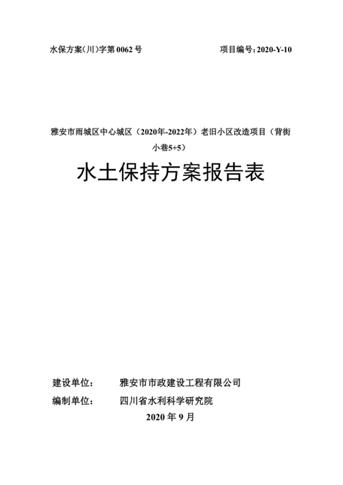 市政公司 雅安市雨城區(qū)中心城區(qū)(2020年-2022年)老舊小區(qū)改造項目(背街小巷(5+5)水土保持方案報告表